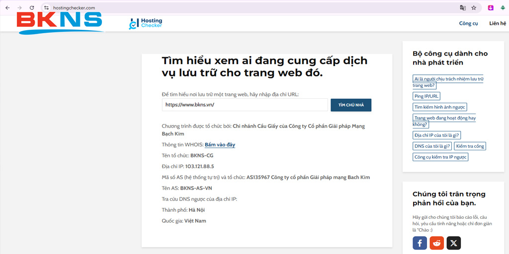 Thực tế, không phải ai cũng biết cách kiểm tra hosting của một website sao cho nhanh, đúng và tiết kiệm thời gian. Trong bài viết này BKNS sẽ hướng dẫn bạn 5 cách kiểm tra Hosting của Website nhanh và chính xác, từ các cách làm đơn giản đến những công cụ dễ dùng, giúp bạn tra cứu thông tin hiệu quả ngay cả khi không có nhiều kiến thức kỹ thuật.