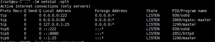 Dùng lệnh netstat -nplt để kiểm tra nginx đã dùng cổng 80 và apache dùng cổng 8080 chưa.