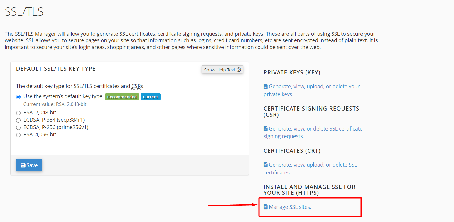 Chọn tiếp vào Manage SSL sites