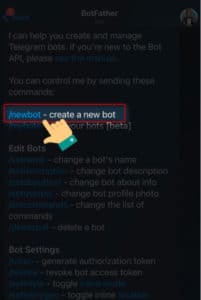 B4: Hệ thống sẽ hiển thị ra đoạn chat, sau đó bạn nhấn vào mục /newbot – create a new bot.