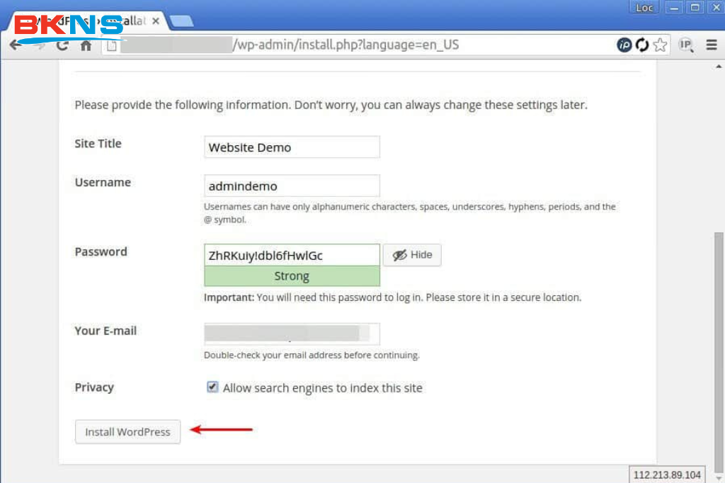 Vậy là quý khách đã hoàn thành cài đặt hoàn chỉnh 1 website Wordpress trên host của BKNS.