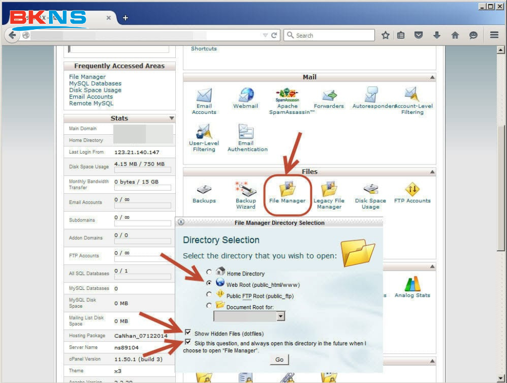 Kế tiếp, quý khách truy cập File Manager, chọn như hình 2 để vào giao diện quản lý file (thư mục public_html):