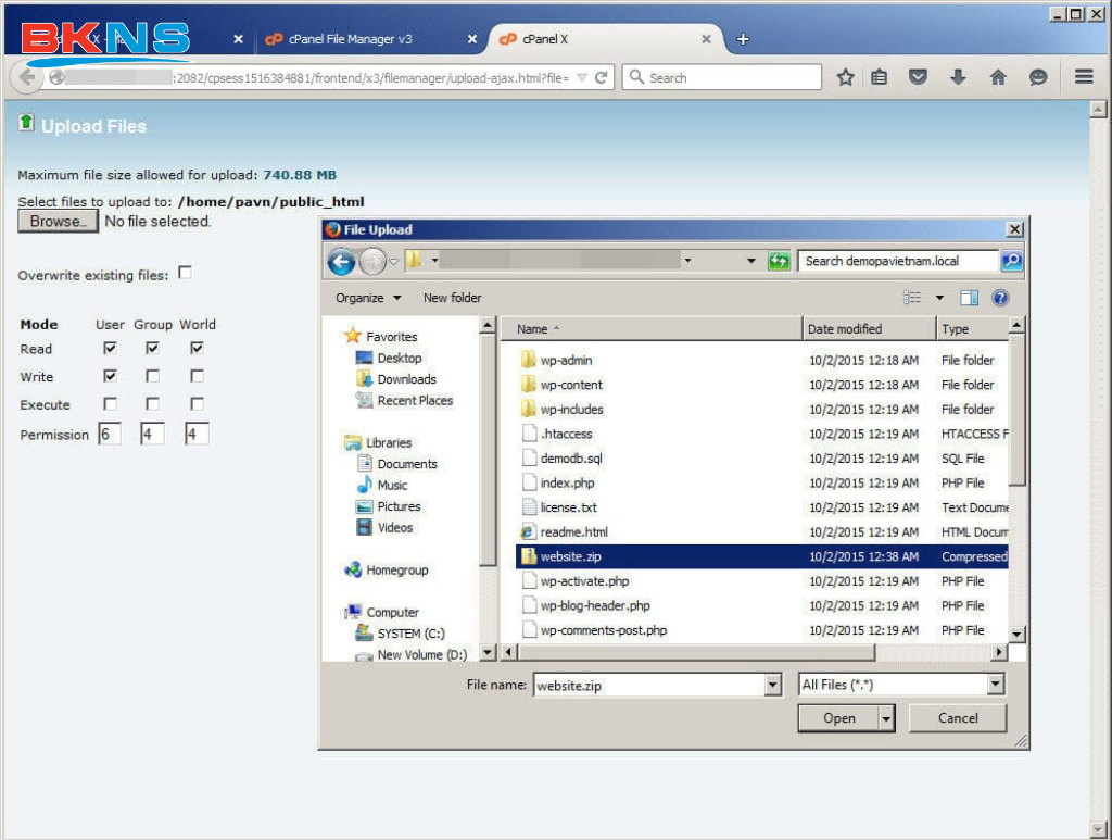 BKNS hỗ trợ bạn upload file *.zip lên sever. Mình khuyên bạn là nên nén vào vào upload file *.zip, sẽ giảm thiểu đáng kể thời gian cho bạn.