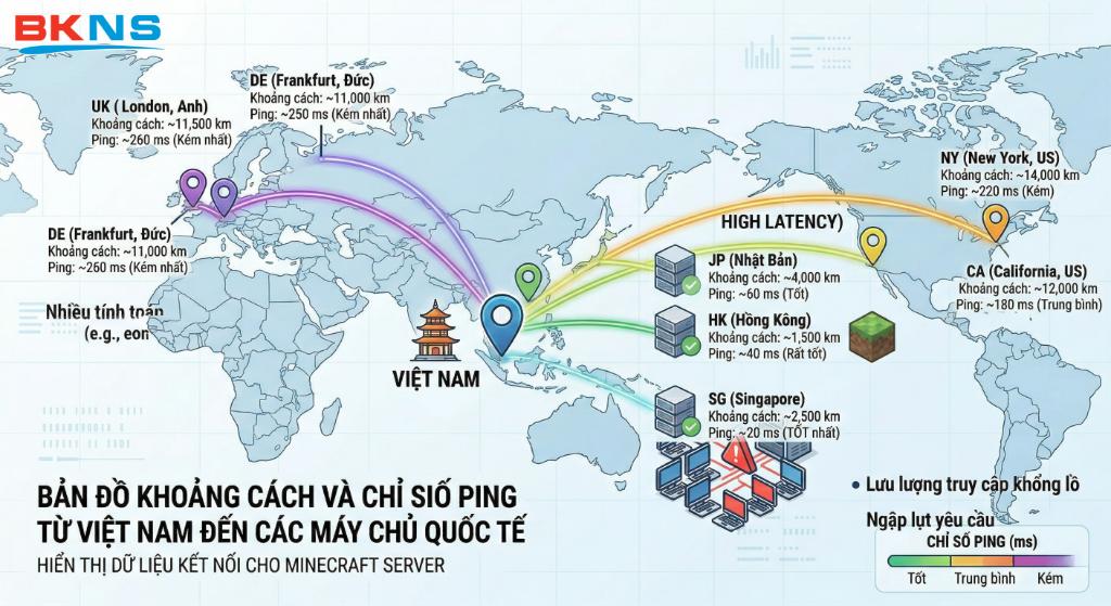 Nếu bạn ở Việt Nam nhưng chọn server đặt tại US hoặc châu Âu, độ trễ (ping) sẽ rất cao. Điều này khiến hành động trong game bị delay, hit không chính xác và trải nghiệm trở nên khó chịu. Giải pháp rất rõ ràng: luôn ưu tiên server gần khu vực như Singapore hoặc Asia để đảm bảo low latency.
