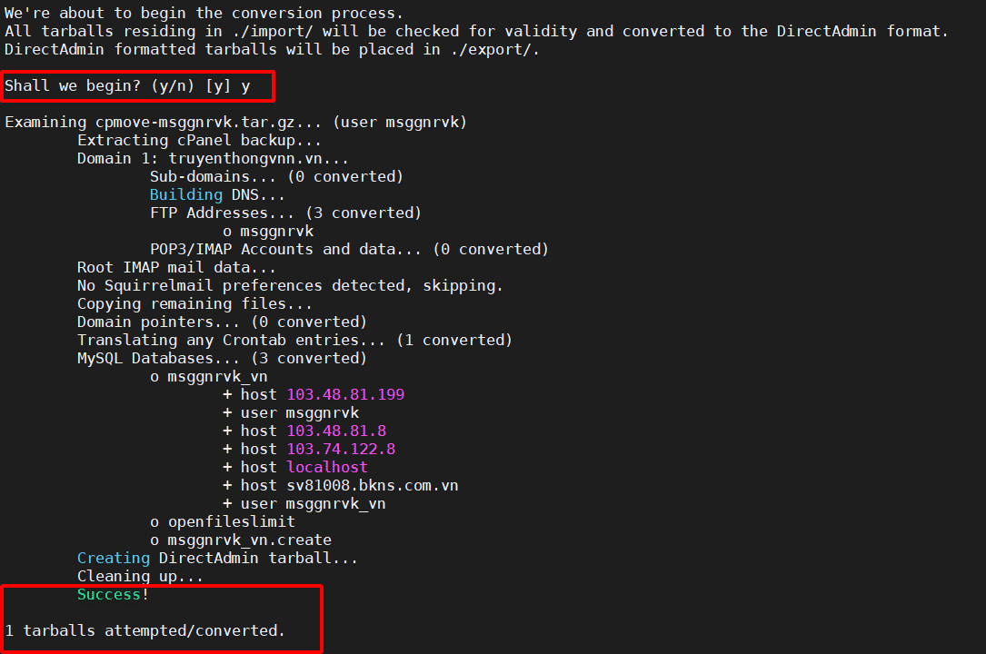 - Ưu tiên cách “native” của DirectAdmin nếu server DirectAdmin của bạn đang dùng bản mới và có sẵn luồng import/convert từ cPanel. Cách này ít phụ thuộc nguồn ngoài và dễ kiểm soát hơn.