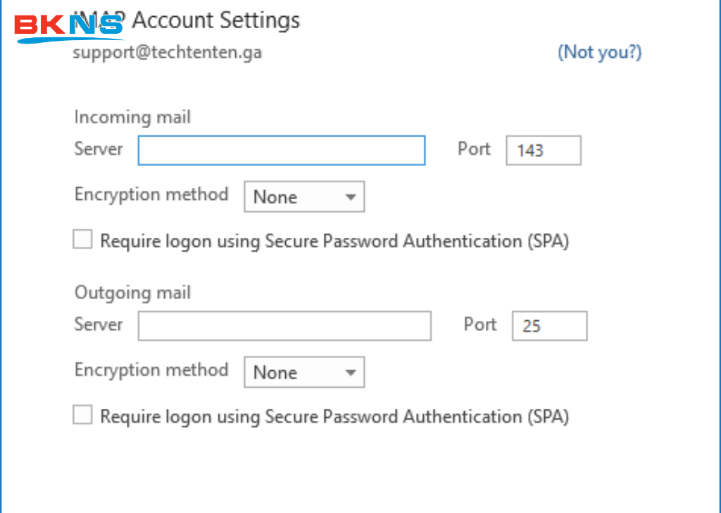 - Cài email thủ công sai máy chủ (server)