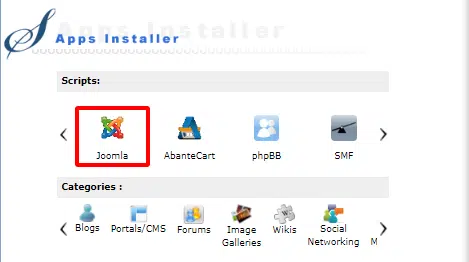 Bước 2: Vào phần apps installer chọn Joomla để cài đặt