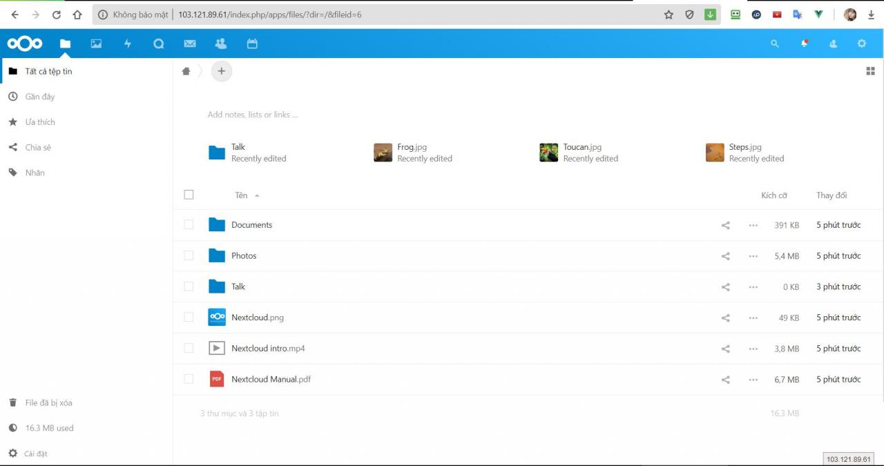 Hoàn thành tất cả các bước trên các bạn sẽ cài đặt được NextCloud. Chúc các bạn thành công!