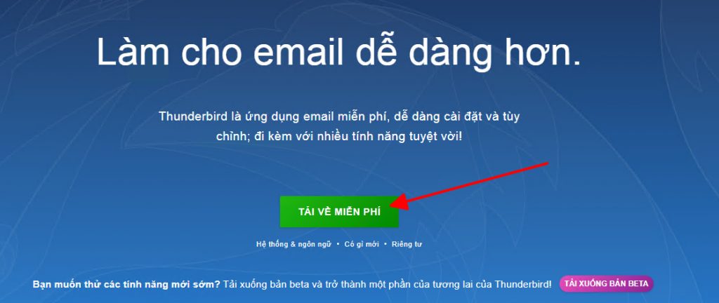 Bước 1: Vào trang chủ Thunderbird bấm tải về miễn phí