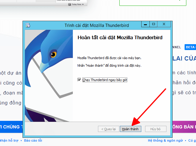 Bước 8: hoàn thành cài đặt hiển thị giao diện Thunderbird