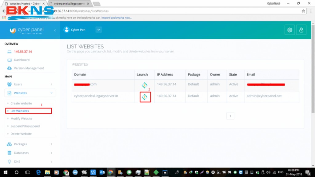 Bước 3: Lựa chọn website của bạn ở mục List Websites