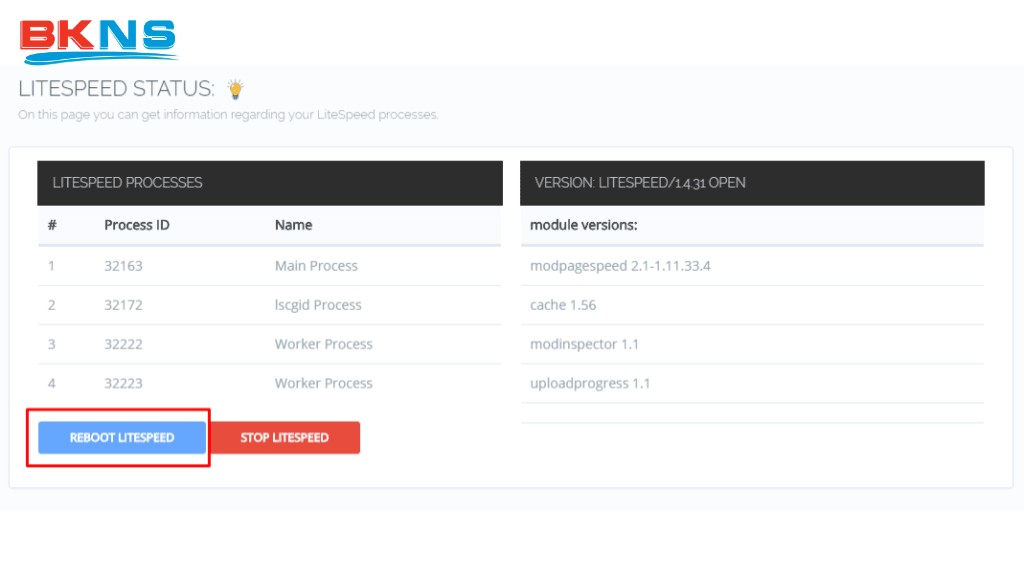 Nhấp vào nút ‘Reboot LiteSpeed’