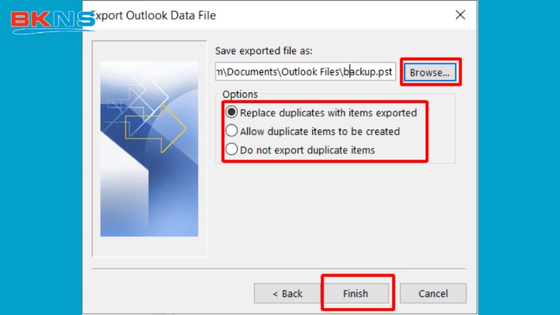 Bước 4: Chọn thư mục cần lưu file => chọn Replace duplicates with items exported => Finish