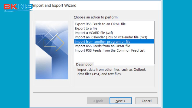 - Khi nhập (Import) lại, hệ thống báo lỗi: “The file is not an Outlook data file”.
