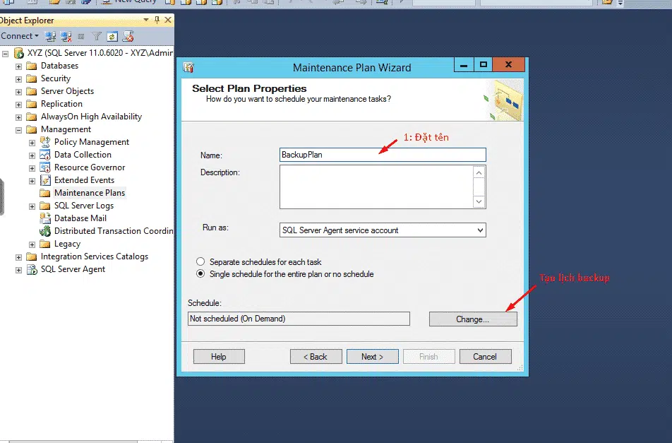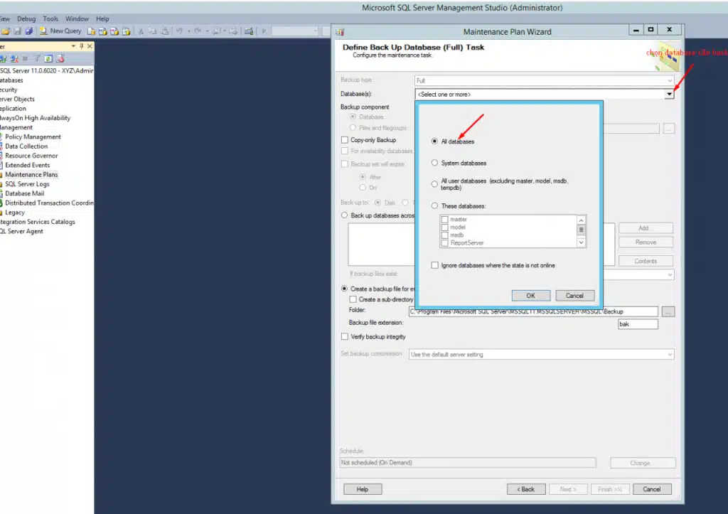 4. Đặt tiến trình lịch backup và lựa chọn database backup: