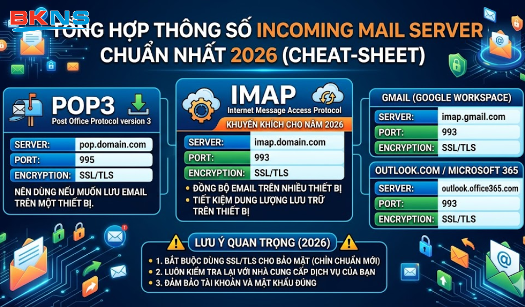 Tổng hợp thông số Incoming Mail Server chuẩn nhất 2026 (Cheat-sheet)