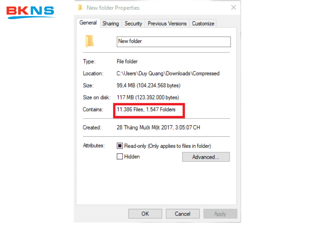 Một cửa sổ hiện lên, bạn nhấn vào Properties