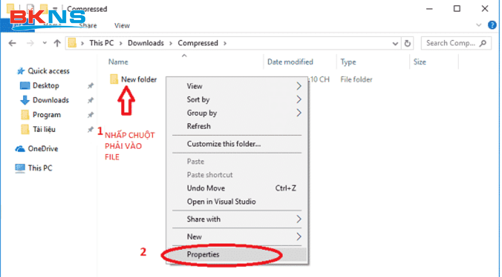 Nhấn chuột phải vào 1 file bất kỳ như hình sau: