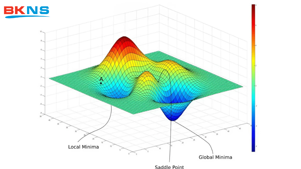 Trong Deep Learning và tối ưu hoá, việc tìm giá trị nhỏ nhất hoặc lớn nhất của một hàm số là một thách thức phức tạp, và thường khó có thể đạt được nghiệm tối ưu toàn cục. Thay vào đó, chúng ta thường tìm những điểm cực tiểu địa phương, có thể coi là các nghiệm gần đúng cho bài toán.