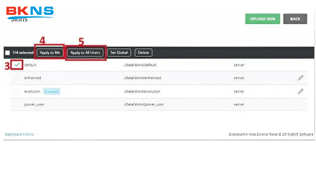 Hôm nay BKNS hướng dẫn quản lý giao diện Directadmin nhanh gọn, dễ dàng mà không phải ai cũng biết. Cùng khám phá ngay! Bước 1: Chuyển về Reseller Level và click “Skin Manager” Phải chuyển sang Reseller Level thì mới nhìn thấy phần quản lý giao diện (Skin) Bước 2: Chọn giao diện muốn … Đọc tiếp
