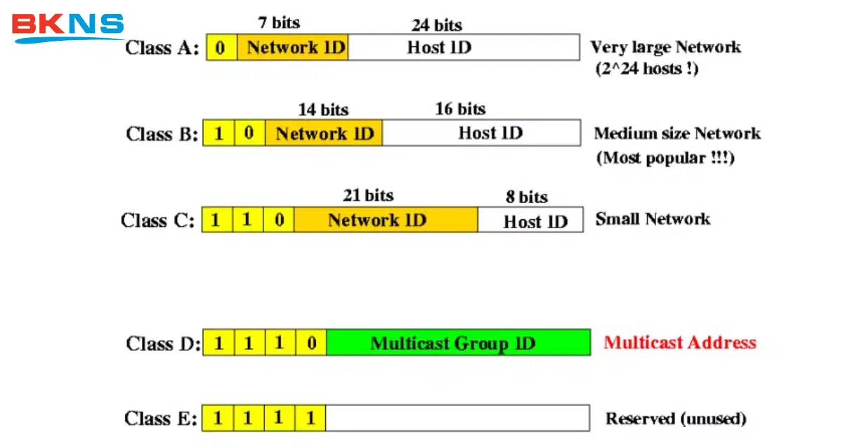 Vì Internet phải phục vụ mạng ở mọi quy mô, nên một hệ thống địa chỉ được thiết kế cho một tập hợp các mạng tồn tại dựa trên việc chia các octet trong địa chỉ IP. Dựa vào ba bit bậc cao nhất bên trái trong bất kỳ địa chỉ IP nào trong năm lớp mạng khác nhau (từ A đến E), bạn có thể xác định loại địa chỉ mạng.