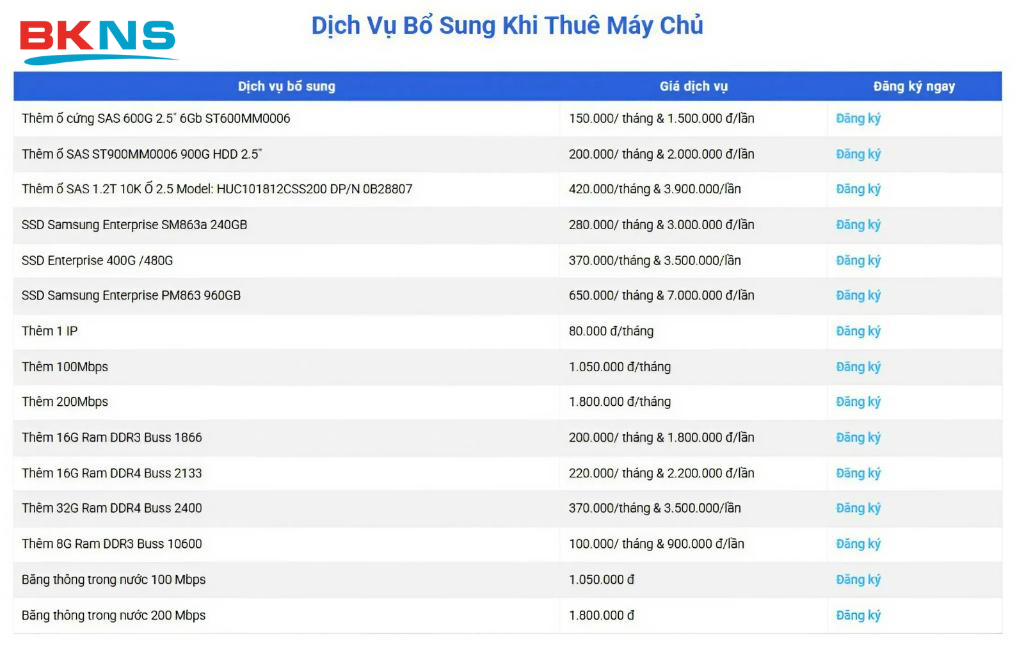 - Bảng giá dịch vụ thuê Server vật lý giá rẻ tại Bkns 2026
