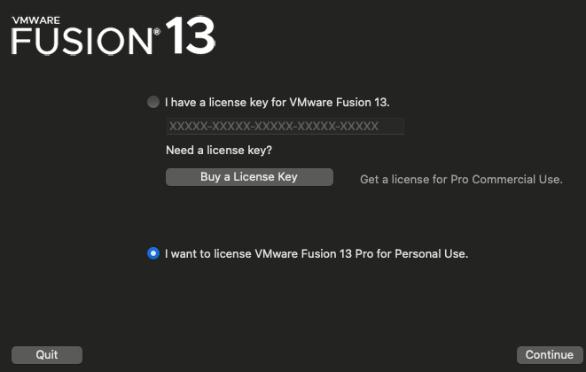 Theo như thông tin của nhà cung cấp thì VMware Fusion 13 miễn phí cho bản cá nhân, nên các bạn có thể skip qua phần nhập key. Còn nếu như các bạn muốn sử dụng bản cao hơn thì có thể tham khảo một số key mình để trên. Chúc các bạn thành công!