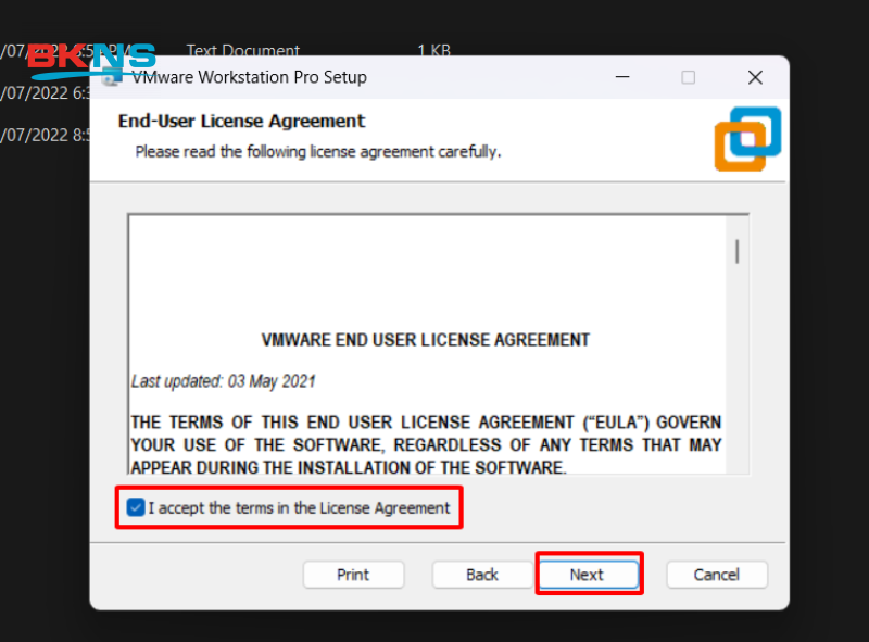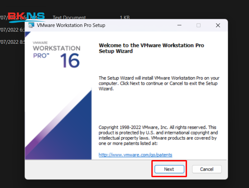 Bước 1: Chạy file VMware-workstation-full-16.2.4-20089737 để tiến hành cài đặt phần mềm