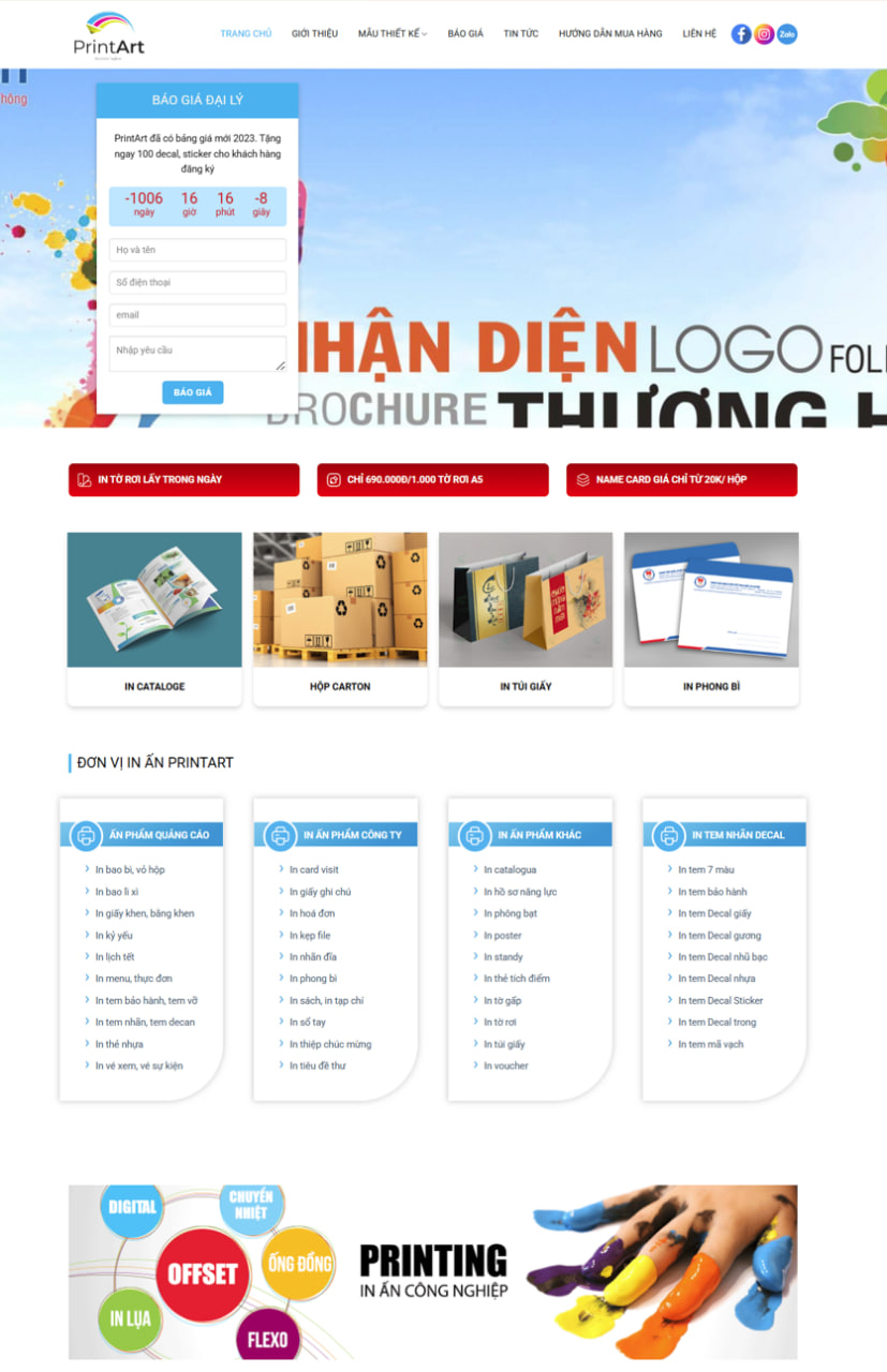 Mẫu website dịch vụ in ấn