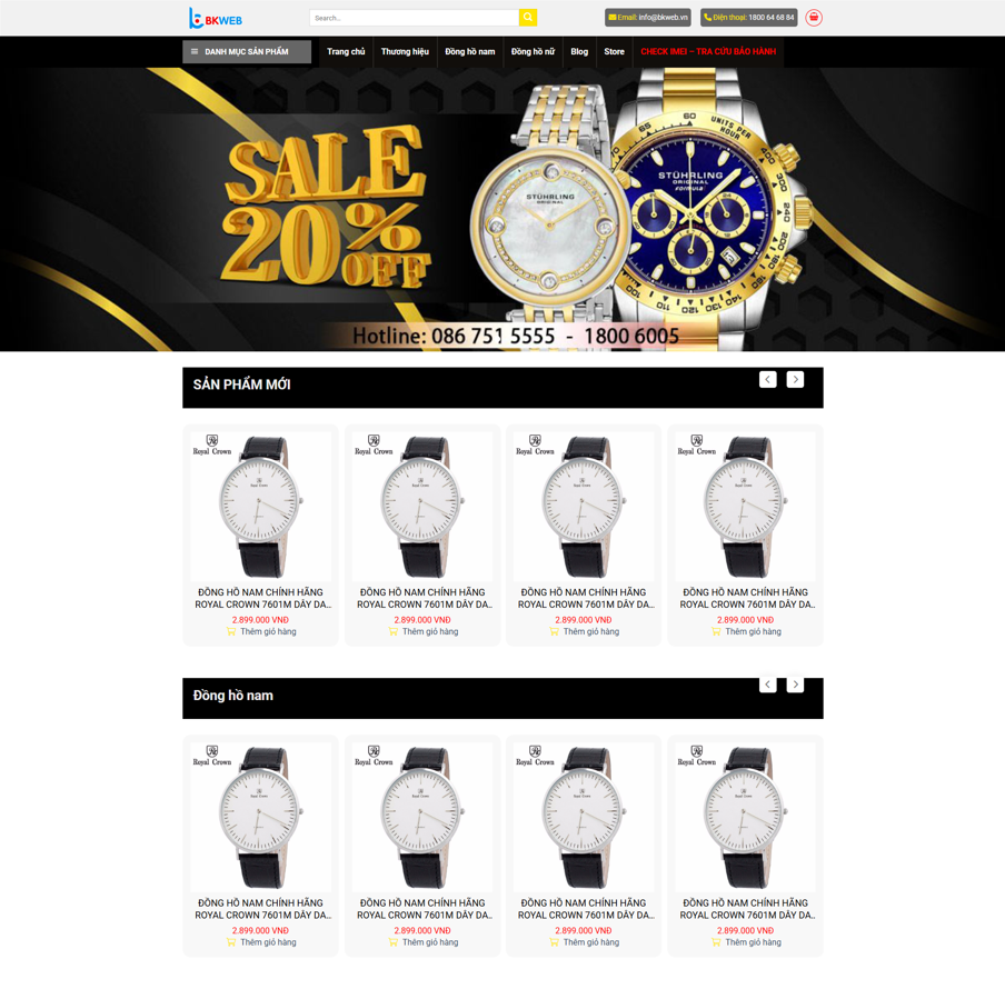 Mẫu website bán hàng đồng hồ