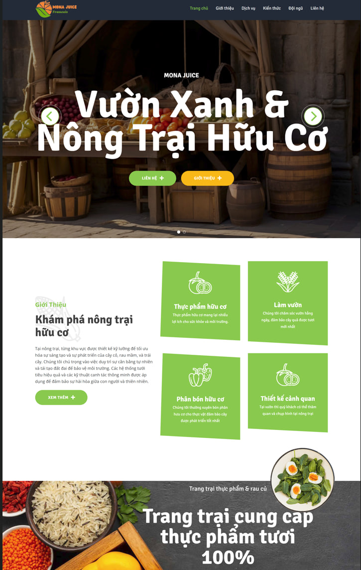 Mẫu website vườn xanh và nông trại hữu cơ